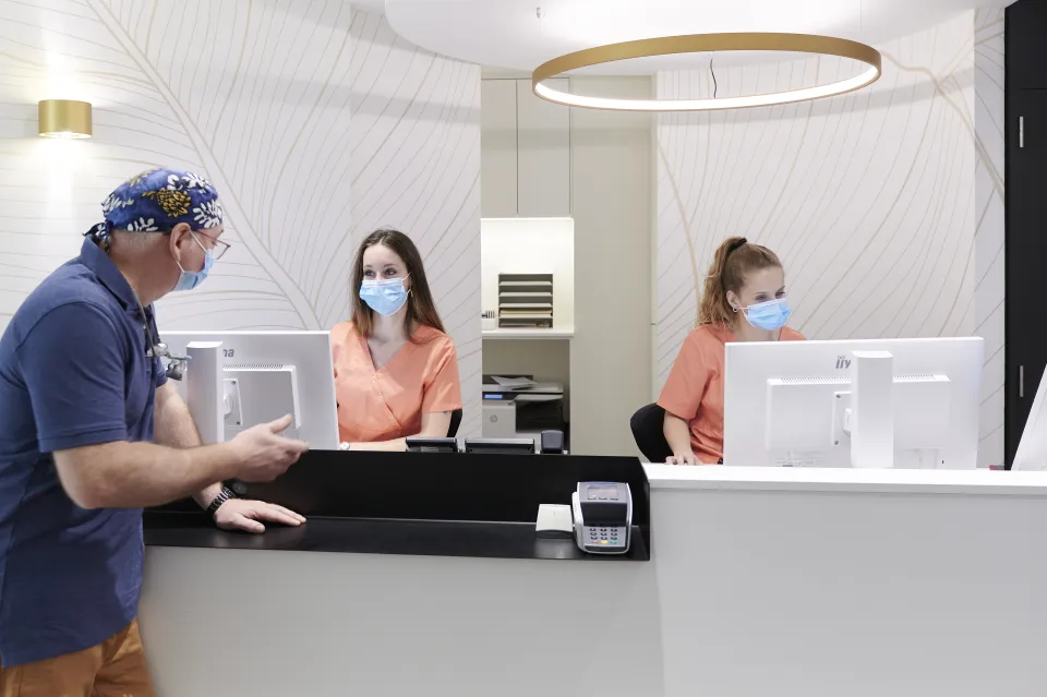 (cabinet 6 fauteuils, équipe: DG, paro/implanto, endo, hygiéniste, maîtres de stage: John Soubhi, Marthe Thomas, Pierre Tiquet)